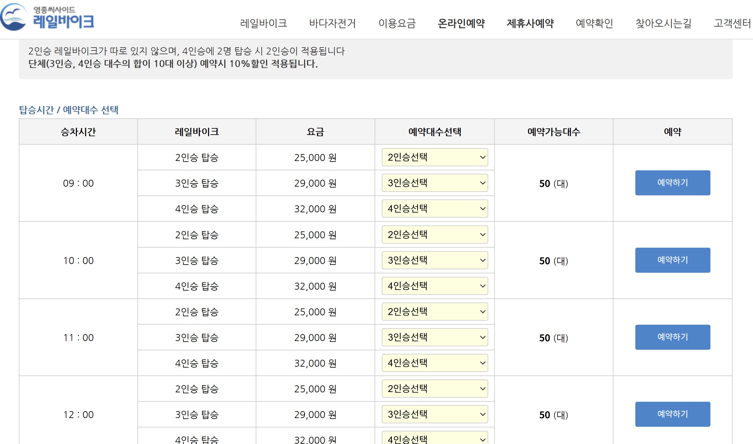 - 홈페이지에서 예약 가능 영종씨사이드레일바이크