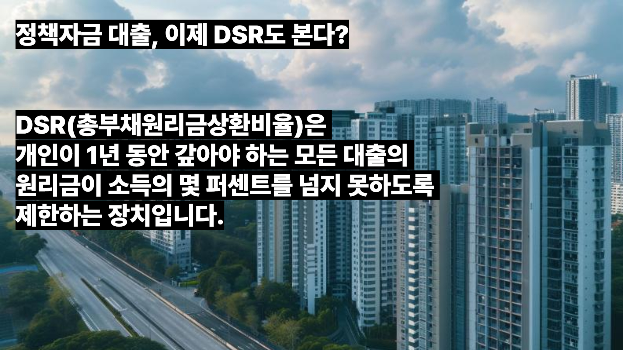 하지만 이젠 정책자금 대출에도 DSR이 적용될 가능성이 높아지고 있습니다. 이 말은 곧, 대출 가능 금액이 줄어들고, 내 집 마련이 더욱 어려워진다는 의미입니다.